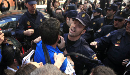 Un doble cordón policial impide a unos 150 concentrados llegar a casa de Posada (PP), en el madrileño barrio de Salamanca
