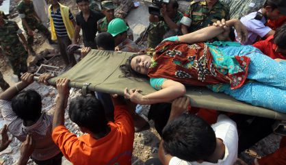 Al menos 110 personas, la mayoría obreros textiles, murieron y entre 600 y 800 resultaron heridas al derrumbarse un edificio que acogía varias fábricas cerca de Dacca (Bangladesh).