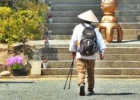 Henro -peregrino- entrando al templo Ishiteji, el número 51 de la ruta. Las capillas se cambian por pagodas y las flechas amarillas por... [sigue]
