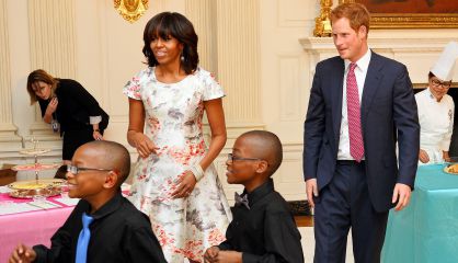 Todos los movimientos de los famosos, en fotos... En la imagen, el príncipe Enrique comienza su gira estadounidense en la Casa Blanca tomando el té con Michelle Obama y niños de militares