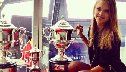 El piloto español y su novia Dasha Kapustina celebran el triunfo en Montmeló y un año de relación