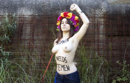 Lara Alcázar, 21 años, estudia Historia del Arte y vive en Gijón. Es la cara y el cuerpo del movimiento feminista internacional Femen en España. Ella y Mira, otra veinteañera de Algeciras, han lanzado la semana pasada el reto de desnudarse, pintarse lemas en el cuerpo y pelear contra "la religión y sus instituciones, las dictaduras y régimenes opresores y la explotadora industria del sexo".