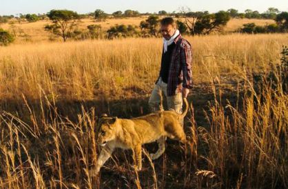 La reserva Antelope Park ofrece la posibilidad de caminar al amanecer por las praderas que rodean el río Ngamo con dos o tres leones jóvenes cogidos del rabo