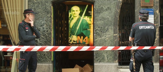 La Ertzaintza custodia el gimnasio del detenido. / VÍDEO: ATLAS / FOTO: EFE