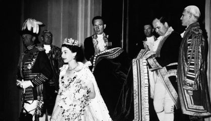 Isabel II conmemora su llegada oficial al trono. La ceremonia se celebró 18 meses después de que se convirtiera en reina al morir su padre