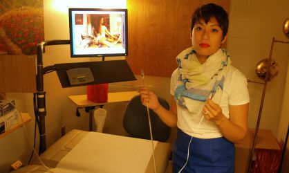 La investigadora Kathryn Macapagal mostrando el fotopletismógrafo vaginal con el que mide la excitación de los genitales femeninos (Imagen:... [sigue]