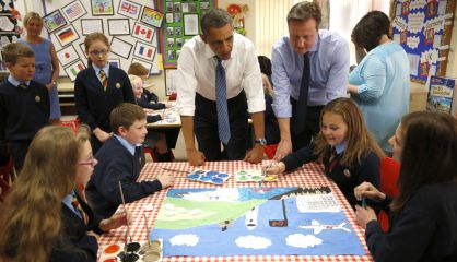 Todos los movimientos de los famosos, en fotos... En la imagen, Barack Obama y David Cameron visitan un colegio en Irlanda del Norte, donde los niños les enseñan los dibujos que han hecho sobre el G-8