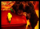 Vino llorando, con un muñeco amarillo entre las fauces. Agitando el muñón de su no rabo. Pidéndome subir a la cama, cosa bastante rara en ella