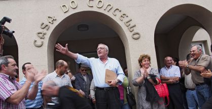 Mayor of Baralla, a small town in Galicia, jeered by demonstrators outside council building