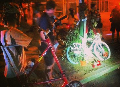 Más de un centenar de ciclistas bloquean el Camino del Chorrillo en mitad de la noche madrileña. Agolpados, con sus bicicletas al lado, miran una bici blanca anclada a una farola. Oscar Fernández Pérez, iba con su bici, cuando fue arrollado