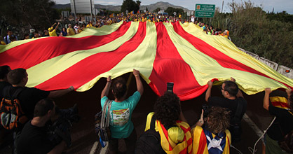 Una inmensa cadena humana cruza Cataluña de norte a sur. Los convocantes exigen a Mas y Rajoy un referéndum en 2014. El Gobierno de CiU insiste: "El PP no puede quedarse sentado"