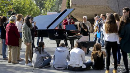 Siete pianos ocupan la céntrica calle madrileña de Serrano, a donde han acudido multitud de viandantes para disfrutar de la música y tocar sus piezas musicales.
