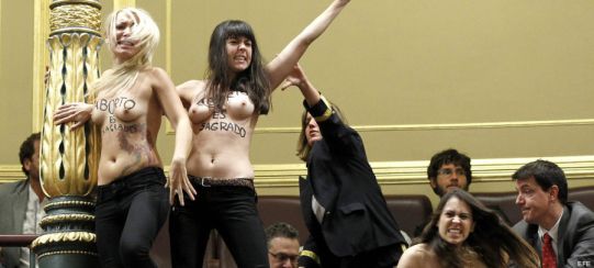 Las activistas, antes de ser reducidas. / ULY MARTÍN / vídeo: atlas