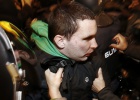 Hooded protestors battle with police during rally
