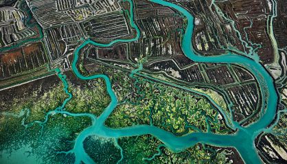 Desde el desierto de Arizona hasta las piscifactorías chinas, pasando por los paisajes de Los Monegros o los invernaderos de Almería, el fotógrafo canadiense Edward Burtynsky sorprende con sus imágenes aéreas en un nuevo proyecto llamado ‘Agua’.