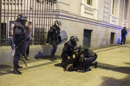 Incidentes cerca de la sede del PP en Madrid, con cargas policiales y lanzamiento de petardos. Hay 11 heridos