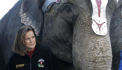 Todos los movimientos de los famosos, en fotos... En la imagen, la princesa Estefanía posa con un elefante del circo de Mónaco, que se acaba de inaugurar