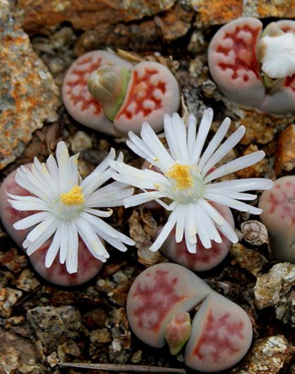 Los lithops son plantas que se disfrazan de piedras, o más bien de guijarros porque son diminutas. Es fácil encontrar algunas variedades en los centros de jardinería. Para contemplarlas en su hábitat natural hay que ir a Sudáfrica y el sur de Namibia
