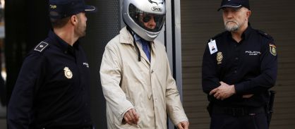Former police inspector accused of torturing detainees during Franco regime appears wearing motorcycle helmet to hide his identity during latest High Court hearing