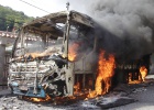 Residents of nearby 'favela' block roads in famous beachside district, forcing shops to close early