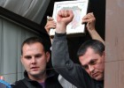 Militantes prorrusos posan en el interior de un edificio del gobierno regional de Donetsk, en el este de Ucrania el 25 de abril de 2014. Una docena las ciudades del este de Ucrania han caído en manos de rebeldes durante las últimas semanas