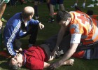 Una avalancha deja 58 heridos en las gradas del estadio navarro
