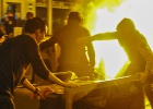 Around 1,000 organized demonstrators clash with riot police in Sants neighborhood to protest clearing of Can Vies center, a hub for alternative social movements