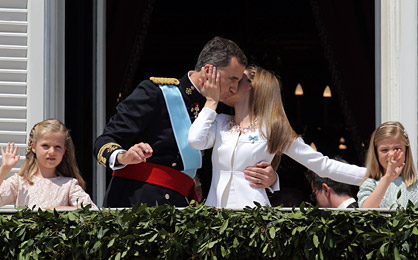 Don Juan Carlos ha impuesto a su hijo la faja de capitán general en la Zarzuela. Los nuevos Reyes se han dirigido al Congreso en un Rolls Royce cerrado, donde el nuevo Monarca expone la hoja de ruta de su reinado.