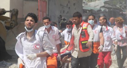 Los voluntarios y los equipos de ambulancias arriesgan su vida para asistir a las víctimas. El emblema de la ONG no les protege