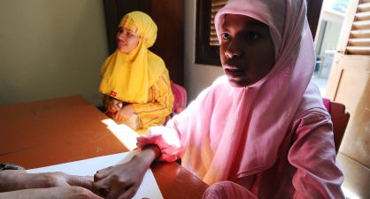 Una escuela en Indonesia enseña a personas con deficiencias visuales a leer el libro islámico en braille