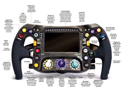 Los pilotos de Fórmula 1 deben llevar sus monoplazas al límite y, a la vez, manejar un volante que es como un ordenador. Cada uno cuesta 40.000 euros. Mercedes nos detalla sus funciones.