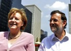German chancellor, who was booed by members of the public outside her hotel in Galicia, takes walk and dines with Rajoy on two-day visit to Spain