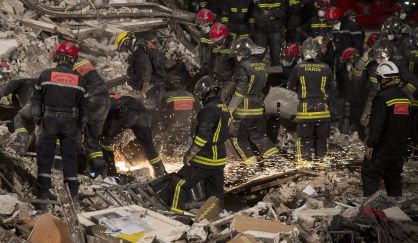 La estructura se desplomó el domingo, después de una fuerte explosión. Los servicios de socorro aún buscan a dos personas