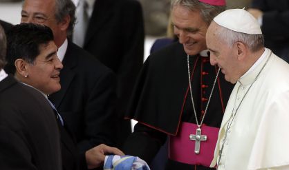 El Pontifice recibió al exjugador argentino y a los jugadores que disputarán el llamado "Partido de la Paz"