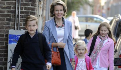 El día a día de los famosos, en imágenes. En la imagen, la vuelta al cole de los príncipes. La reina Matilde de Bélgica acompaña a sus tres hijos, Elisabet (derecha), Eleonor y el príncipe Gabriel, en su primer día de clase en Bruselas.