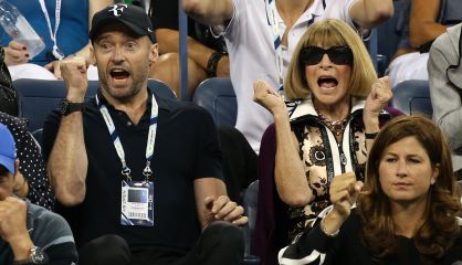El día a día de los famosos, en imágenes. En la imagen, los apasionados del tenis Hugh Jackman y Anna Wintour. El actor y la editora de 'Vogue' no se quisieron perder el partido entre Roger Federer y Gael Monfils en US Open. Abajo a la derecha, Mirka Vavrinec, mujer del tenista suizo.