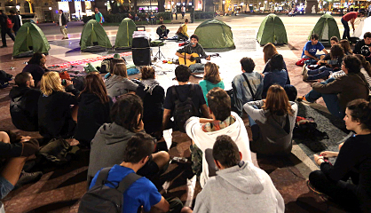 JÓVENES PROCONSULTA ACAMPAN POR EL 9-N Unas 300 personas se instalan en la plaza de Catalunya de Barcelona. / Albert García