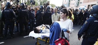 TRES HERIDOS TRAS EL SACRIFICIO DEL PERRO. Decenas de defensores de los derechos de los animales tratan de evitar la muerte de Excalibur, sacrificado esta tarde en la casa de Teresa Romero en Alcorcón (Madrid). / LUIS SEVILLANO