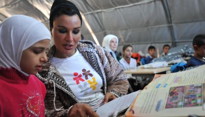 En la imagen, la jequesa de Qatar Sheikha Mozah, madre del emir Sheikh Tamim, visita un campo de refugiados sirio al sur de Turquía. La jequesa ha estado acompañada de la primera dama turca, Emine Erdogan, y del ministro de Educación del país.