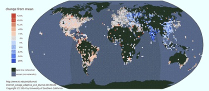 Un estudio con millones de direcciones IP muestra el patrón horario de las conexiones a lo largo del planeta