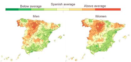 A new chart shows death rates from certain tumors can be up to 50 percent higher in some areas
