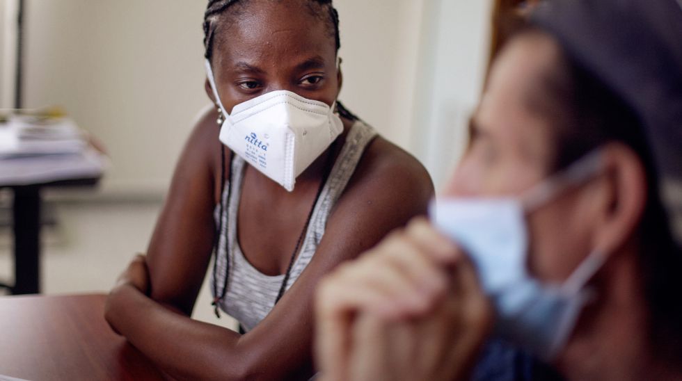 Una trabajadora de MSF explica su programa de formación a enfermeros para tratar a VIH-positivos en zonas rurales sin necesidad de que acudan al hospital