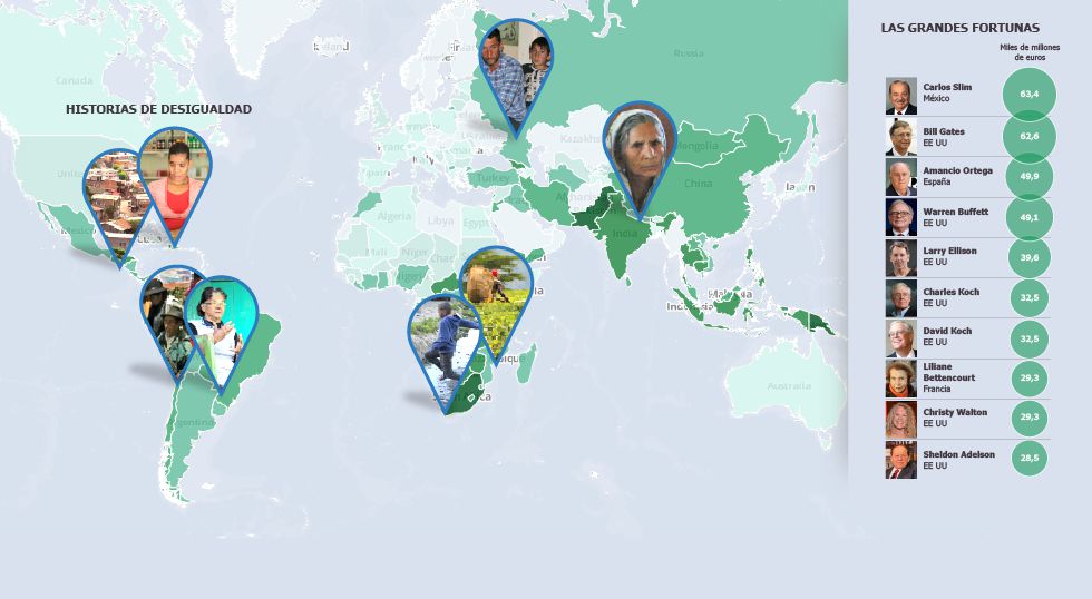 Ya sea por renta, riqueza o patrimonio, la brecha entre ricos y pobres no deja de crecer: cada día son más lo que viven con menos. Así lo indica el informe 'Iguales' de Oxfam Intermón. Por A. AGUDO