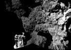 "Ahora que estoy segura sobre el suelo, este es el aspecto que tiene mi nuevo hogar 67P desde mi posición", afirma en un tweet