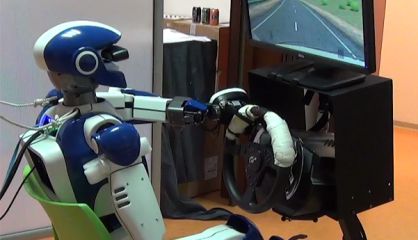 Investigadores europeos logran que un autómata humanoide maneje un coche en un simulador con sus manos al volante