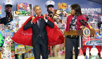 En la imagen, Barack Obama, y la primera dama, Michelle Obama, durante la entrega de juguetes donados por el personal de la Oficina Ejecutiva del Presidente a la campaña 'Toys for Tots' de la Infantería de Marina de la Reserva