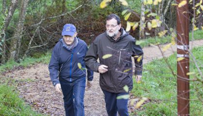 En la imagen, Mariano Rajoy, de descanso en las Rías Baixas (Pontevedra) junto a su familia. En la fotografía, el presidente camina por la Ruta da Pedra e da Auga, en Ribadumia, acompañado de José Benito Suárez, presidente de la Autoridad Portuaria Marín-Pontevedra y marido de la ministra Ana Pastor