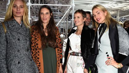 En la imagen, Tatiana Casiraghi (segunda por la izquieda), visiblemente embarazada de su segundo hijo, con Lauren Santo Domingo, Olympia Scarry y Elisabeth von Thurn und Taxis, en el desfile de París de la firma Dior
