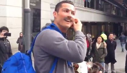 El futbolista, ganador del Balón de Oro 2014, se disfraza y le regala un balón al pequeño
