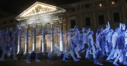 A high-tech demonstration brings together 2,000 virtual protestors outside Congress in Madrid